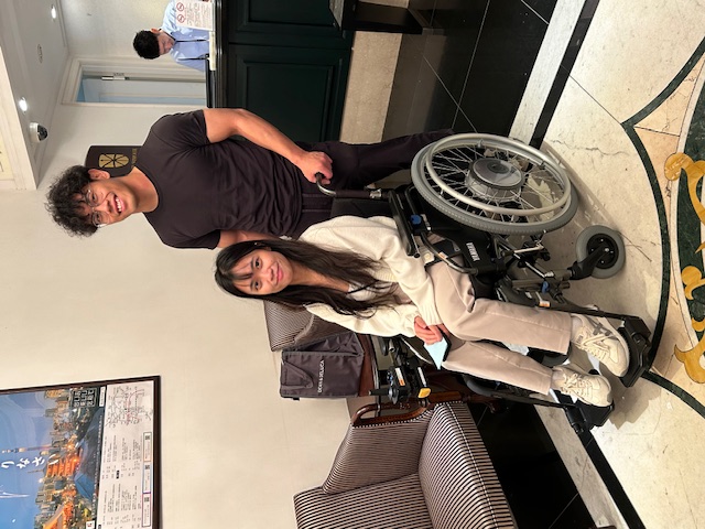 She is from Phillipines. She is a student of Tokyo University. She broke her leg and needed our wheelchair for 2 months.